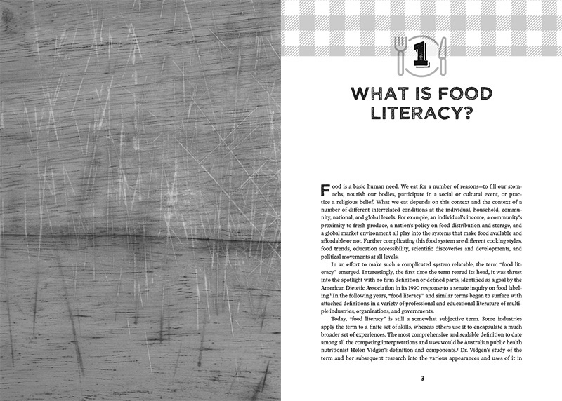 This book by Hillary Dodge for the American Library Association aims to help librarians create food-based programming in their libraries. The art and type ties in with the book cover. The text includes tables, boxes, programming examples, lists, and multiple appendices.
