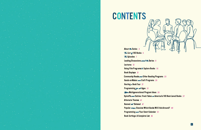 Guide for library programming around the PBS series The Great American Read. The cover logo was created by PBS. I designed this guide around the branding colors and feel and sourced the display illustrations. Client: Public Programs Office, American Library Association.