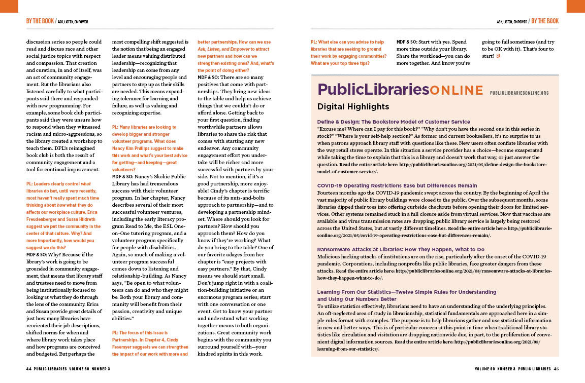 I designed the template for this journal of the Public Library Association, and regularly lay out the issue. The template contains many departments, three feature styles, news, sidebar/table/chart styles, etc.