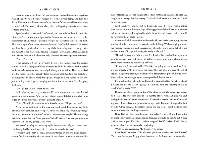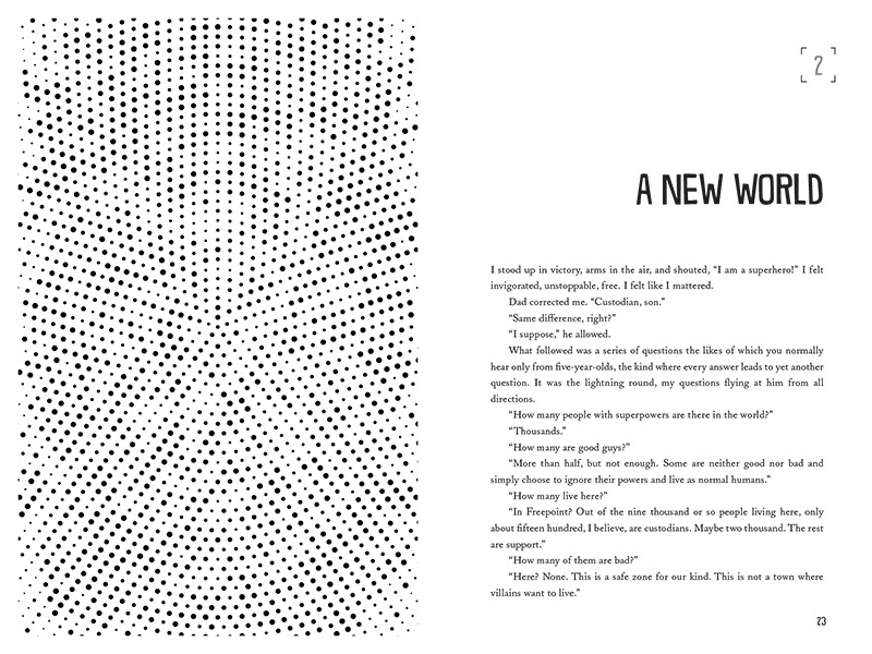 I loved designing and typesetting the book interiors for The Ables and Strings by Jeremy Scott for Turner Publishing, in which a group of kids with disabilities have superpowers. I chose art to tie-in with the comic-style cover and illustrations.
