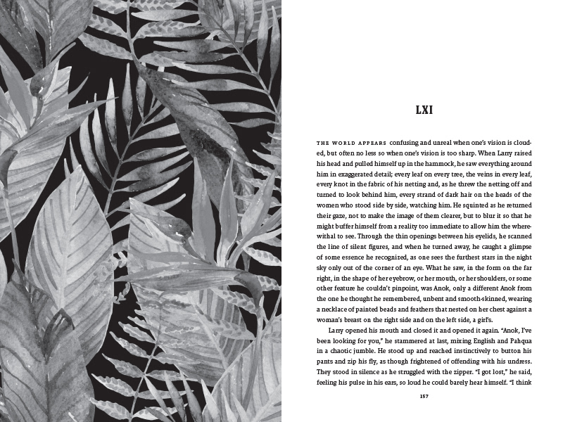 This novel involves relationships with an indigenous people and is set in the Brazilian Amazon, so I used lush, tropical imagery in a variety of styles to evoke the complexity of the story.